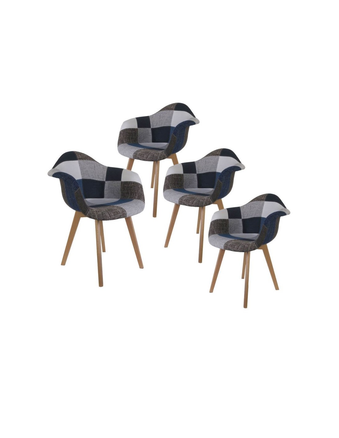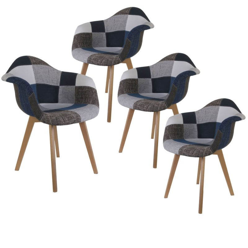 Caractéristiques sur le Lot De 4 Fauteuils Patchwork Bleu Gris Home Deco Factory :