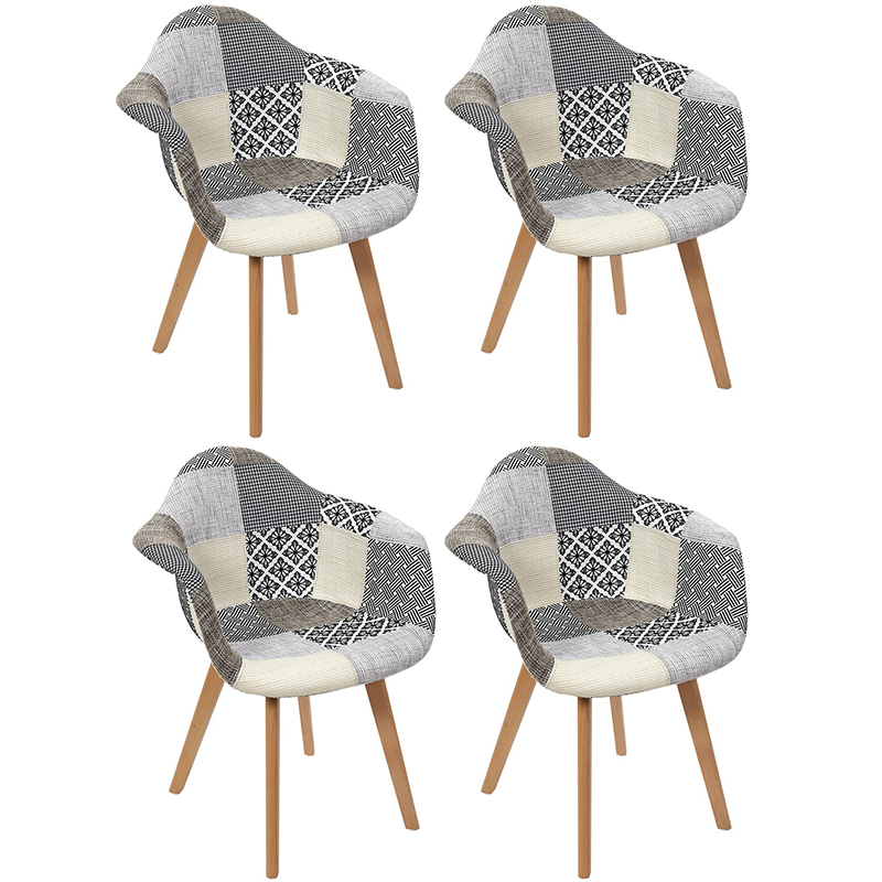 Caractéristiques sur le Lot De 4 Fauteuils Salon Patchwork Gris Home Deco Factory :