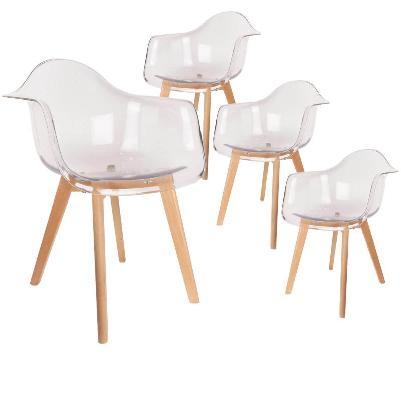 Le design transparent de ces fauteuils d'inspiration scandinave aura raison de vous ! Vous aurez le sentiment d'être confortablement installé sur un trône, testez-le, vous ne le quitterez plus ! Pour succomber au charme du style nordique, nous vous proposons ce lot de 4 fauteuils scandinaves en polypropylène. Design mais surtout confortable, ils s'intègrent dans votre intérieur pour une décoration épurée et sobre sans faire l'impasse sur la modernité.