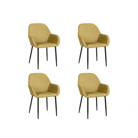Caractéristiques sur le Lot De 4 Fauteuils Velours Côtelé Giulia Jaune Home Deco Factory :