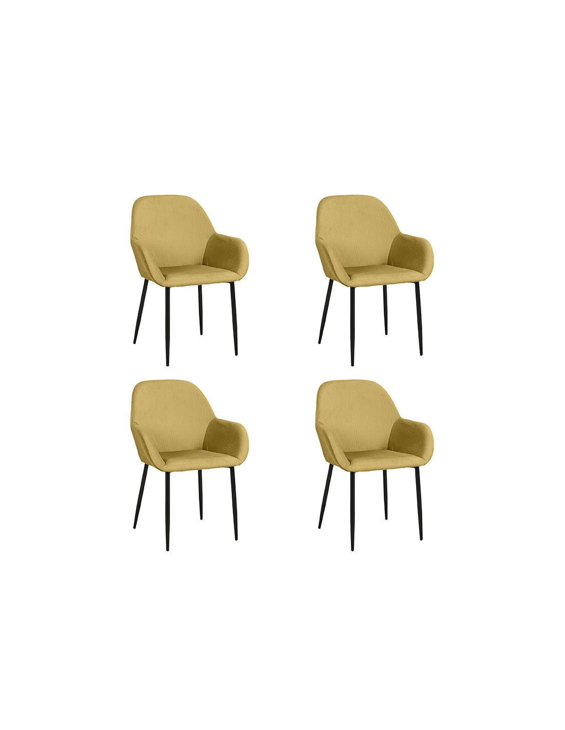 Lot De 4 Fauteuils Velours Côtelé Giulia Jaune Home Deco Factory