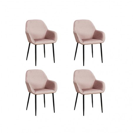 Lot De 4 Fauteuils Velours Côtelé Giulia Rose Home Deco Factory