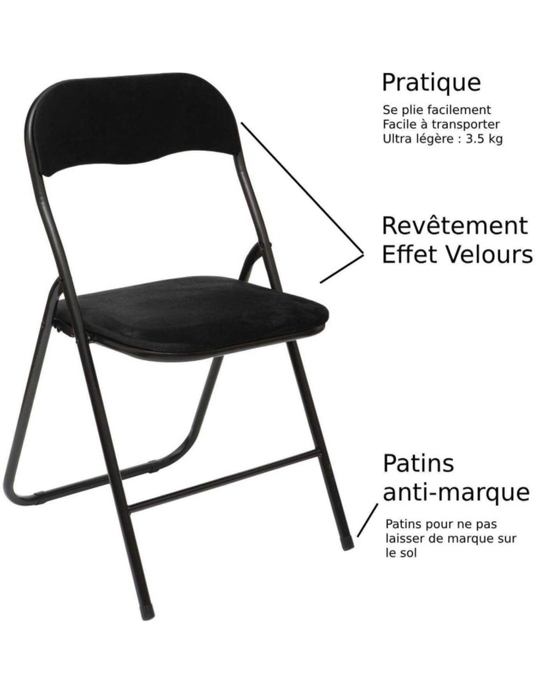 Caractéristiques sur le Lot de 6 Chaises en Velours Pliantes Noires Five :