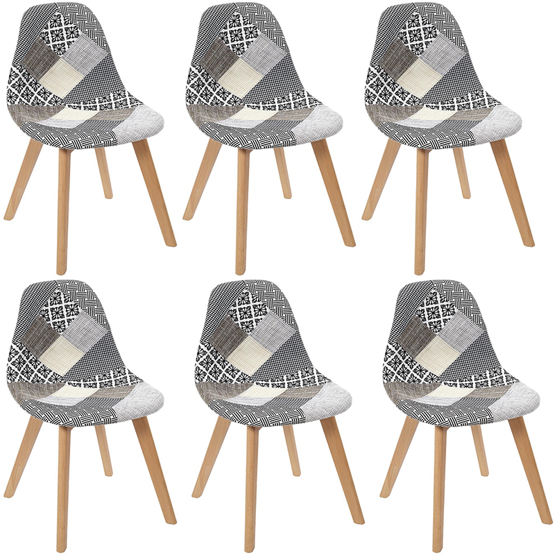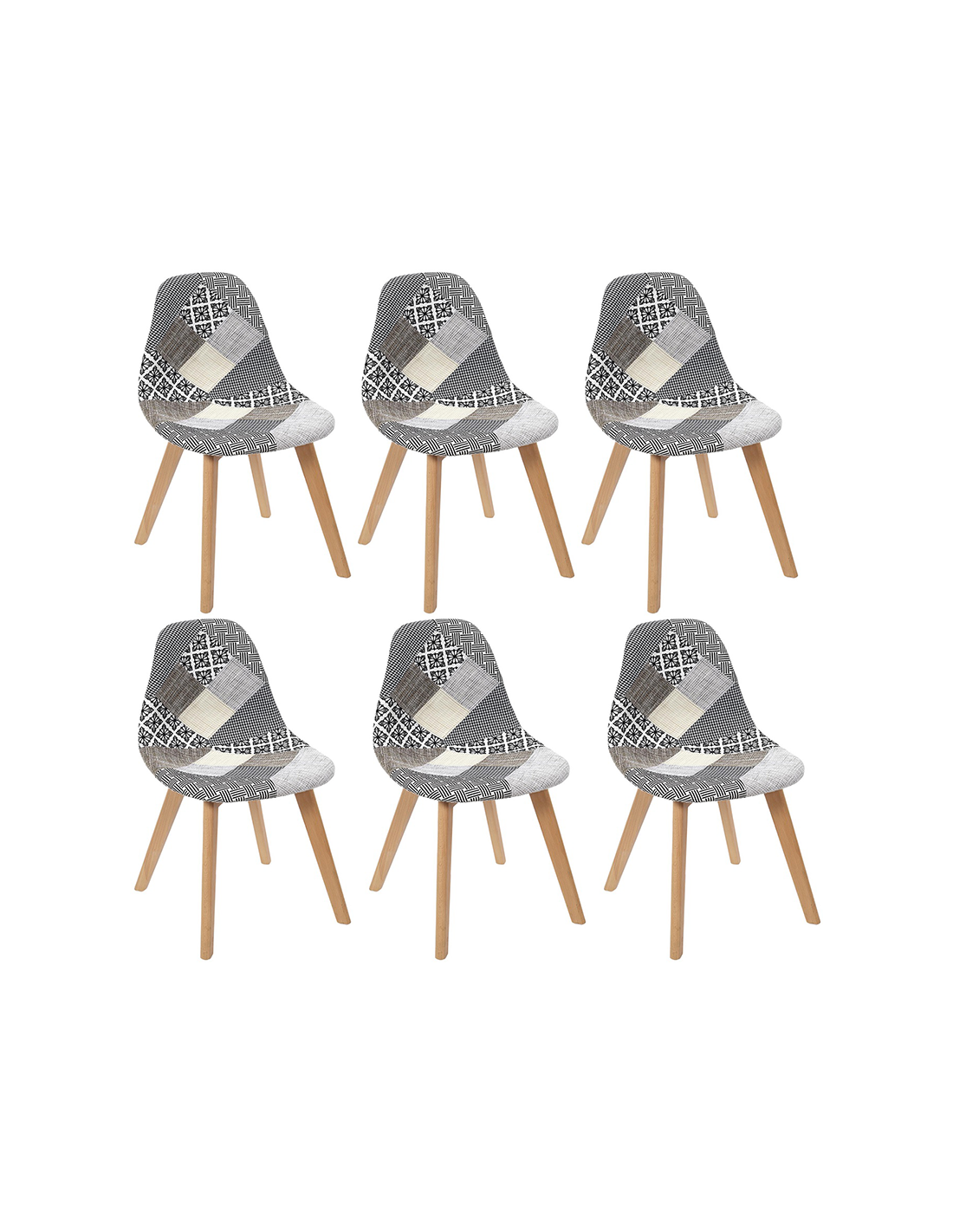 Ce lot de 6 chaises gris et style patchwork apportera beaucoup de chaleur et de lumière à votre intérieur. Grâce à son style il s'intègre facilement dans votre intérieur.