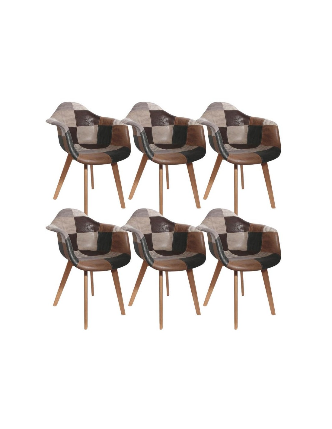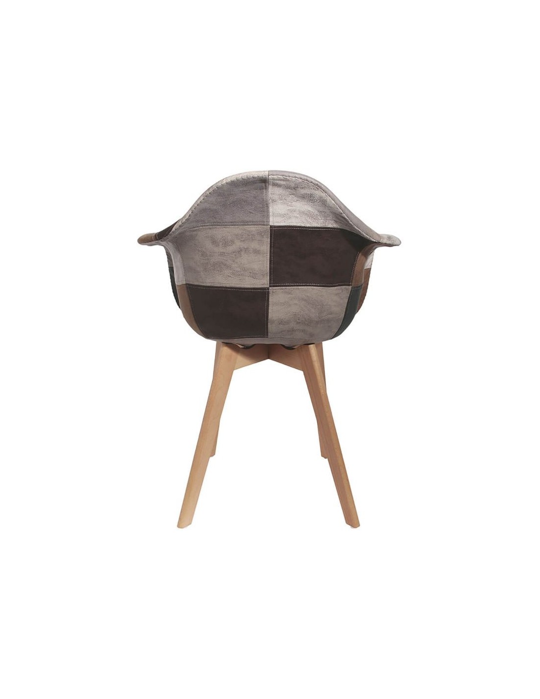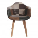 Optez pour un design qui ne passera pas inaperçu ! Non content d'offrir un revêtement doux au toucher garantissant un confort d'assise optimal, ce fauteuil possède un motif patchwork ancien des plus original. Piétement en bois massif finition naturelle. Revêtement assise et dossier en tissu aspect cuir, motif patchwork.