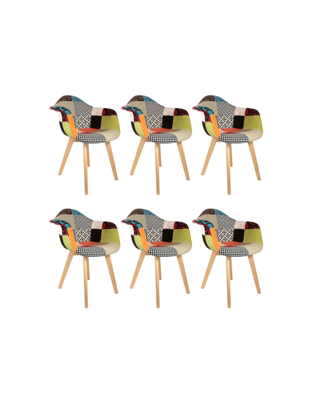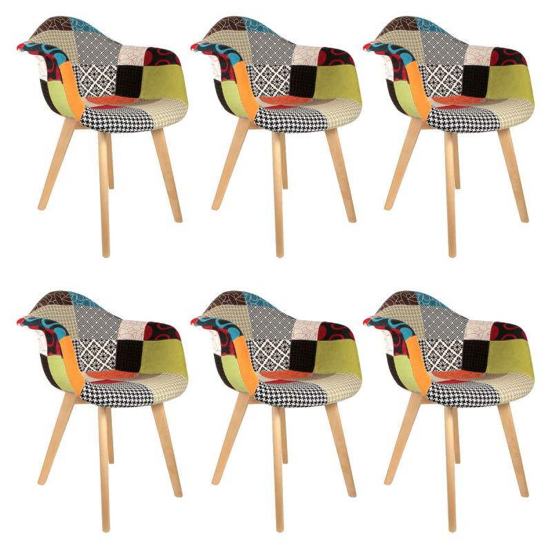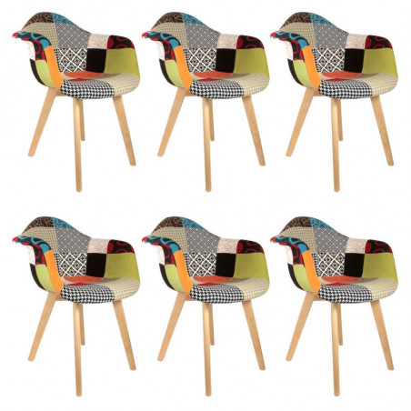 Caractéristiques sur le Lot De 6 Fauteuils Patchwork Multicolore Home Deco Factory :