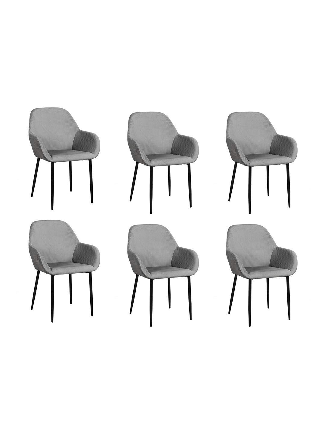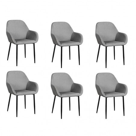 Lot De 6 Fauteuils Velours Côtelé Giulia Gris Home Deco Factory