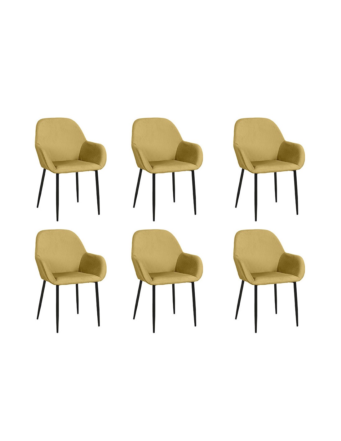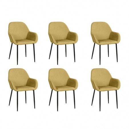 Lot De 6 Fauteuils Velours Côtelé Giulia Jaune Home Deco Factory