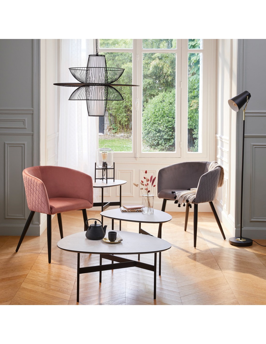Caractéristiques sur le Lot De 6 Fauteuils Velours Marlo Gris Atmosphera :