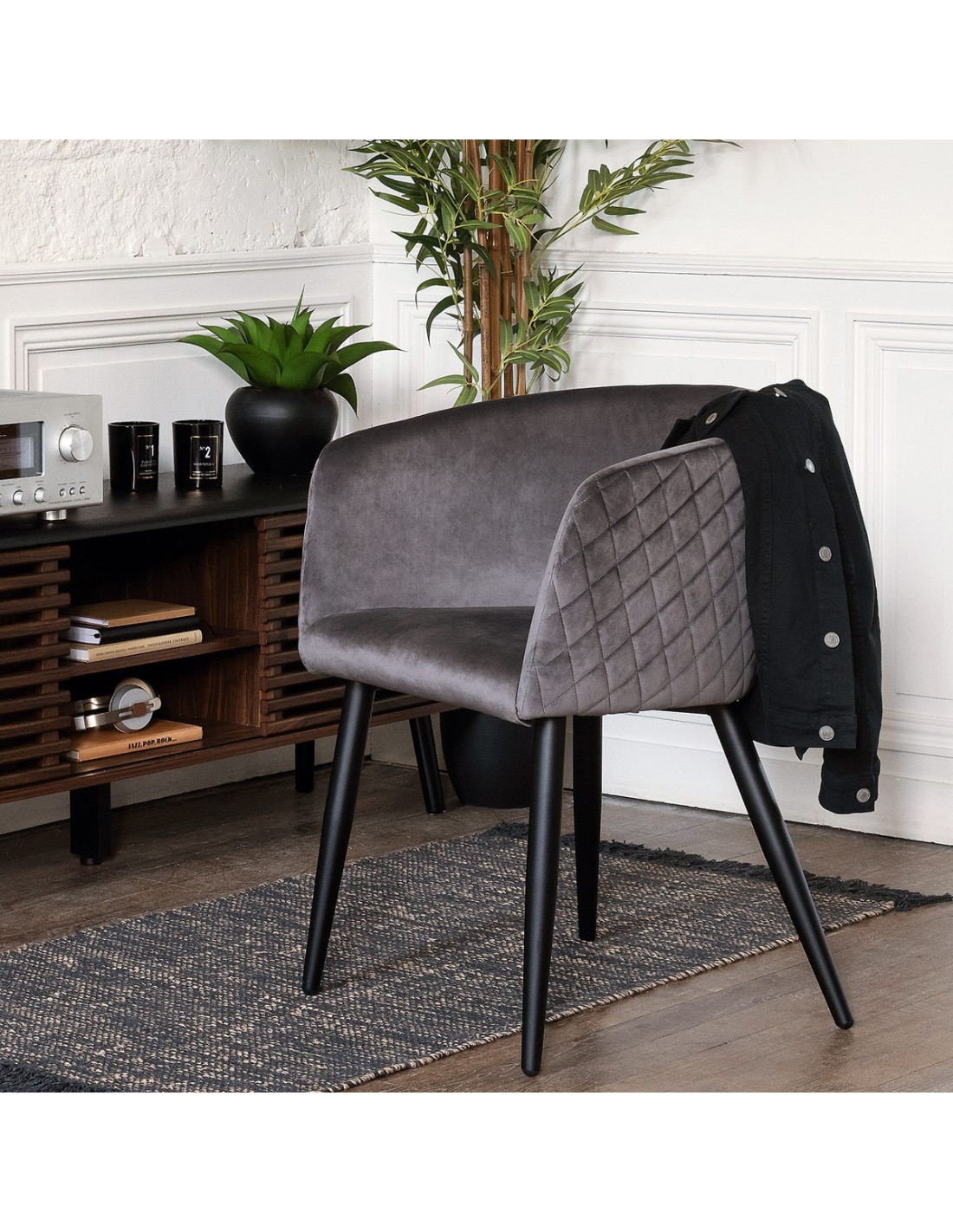 Installez-vous confortablement dans ce fauteuil à l'assise agréable et au style chic et épuré. Ce fauteuil léger se déplacera aisément en fonction de vos besoins. Côté entretien, un coup de brosse douce sur le velours lui rendra son volume et sa brillance.