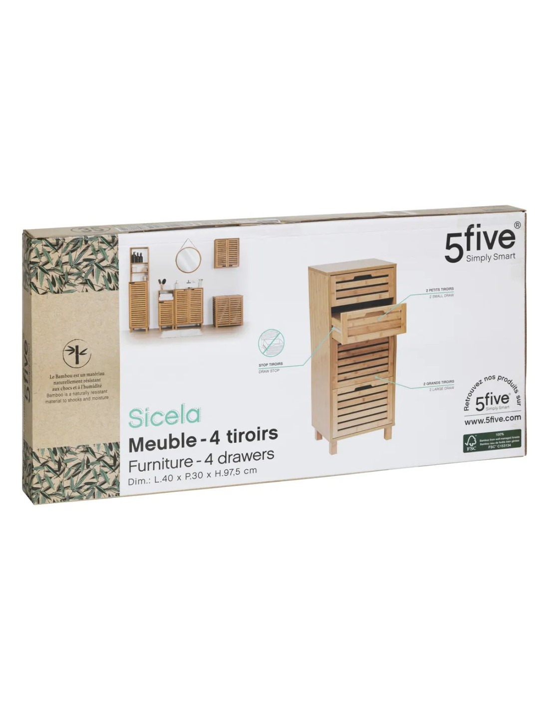 Caractéristiques sur le Meuble 4 Tiroirs Sicela En Bambou Marron Five :