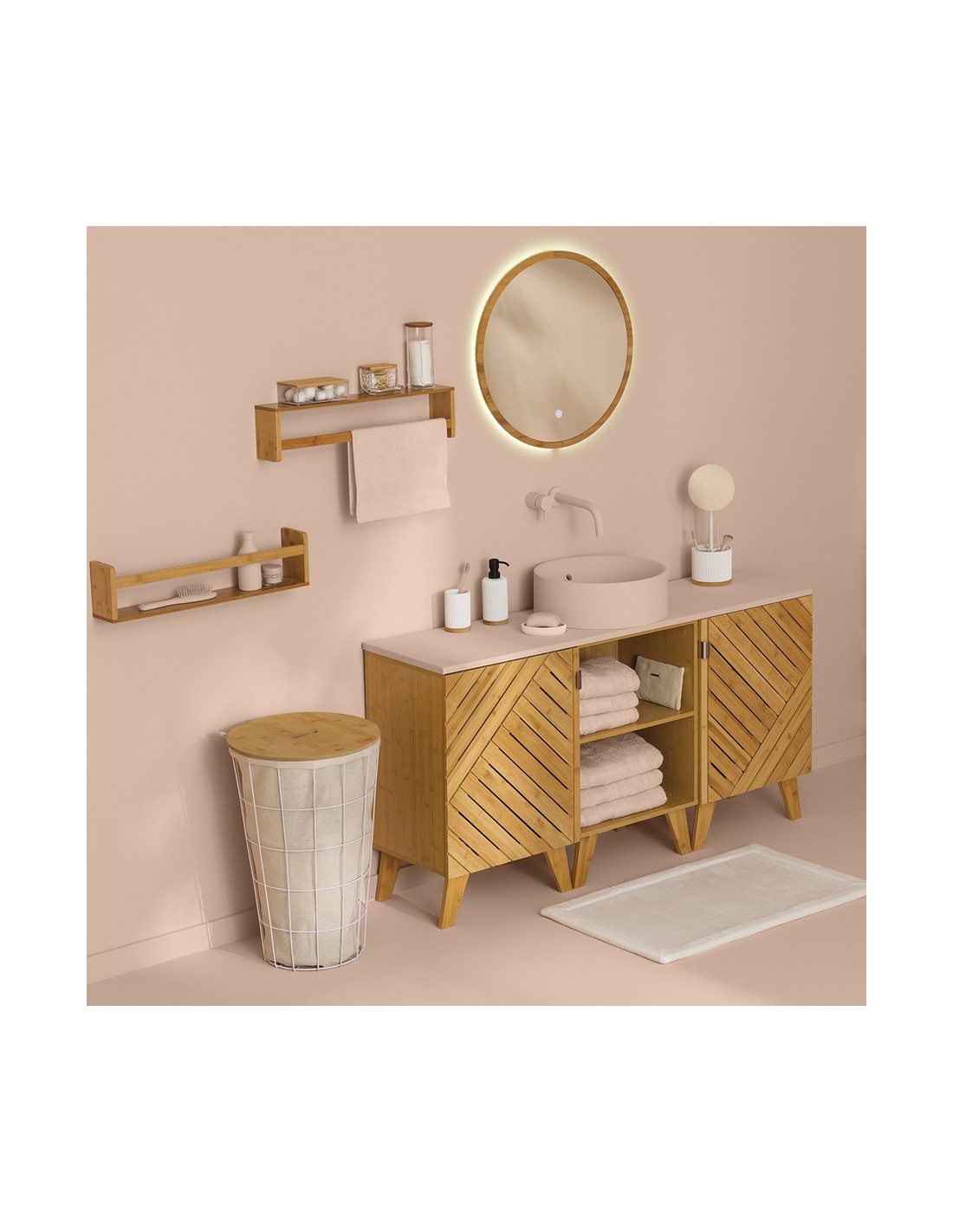 Offrez à votre salle de bain une touche de chaleur et de modernité avec le meuble avec porte Bath’N’Modul en bambou beige de Five. Alliant design épuré, matériaux durables et fonctionnalité optimale, ce meuble est la solution idéale pour organiser votre espace tout en ajoutant une note naturelle et apaisante. Le bambou beige, avec son grain élégant et sa finition soignée, apporte une ambiance zen et chaleureuse à votre salle de bain. Il s'intègre parfaitement à tous les styles, du plus contemporain au plus classique. Grâce à sa porte discrète, ce meuble permet de ranger serviettes, produits de beauté et accessoires du quotidien en toute simplicité, gardant ainsi votre espace toujours net et ordonné. Sa taille pratique s’adapte aux petites salles de bain tout en offrant une capacité de stockage idéale. Placez-le sous un lavabo, dans un coin ou à côté de la douche pour une organisation maximale !
