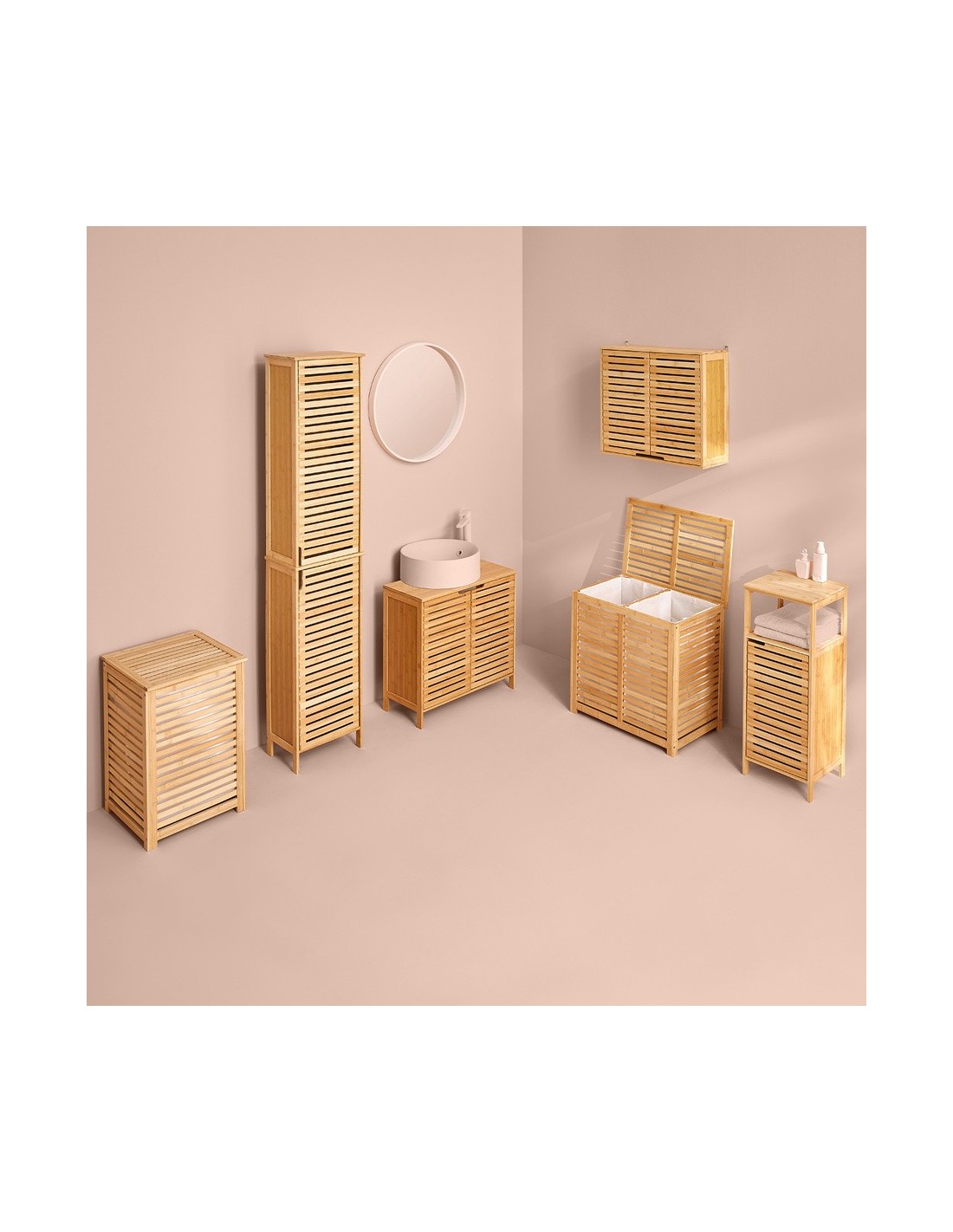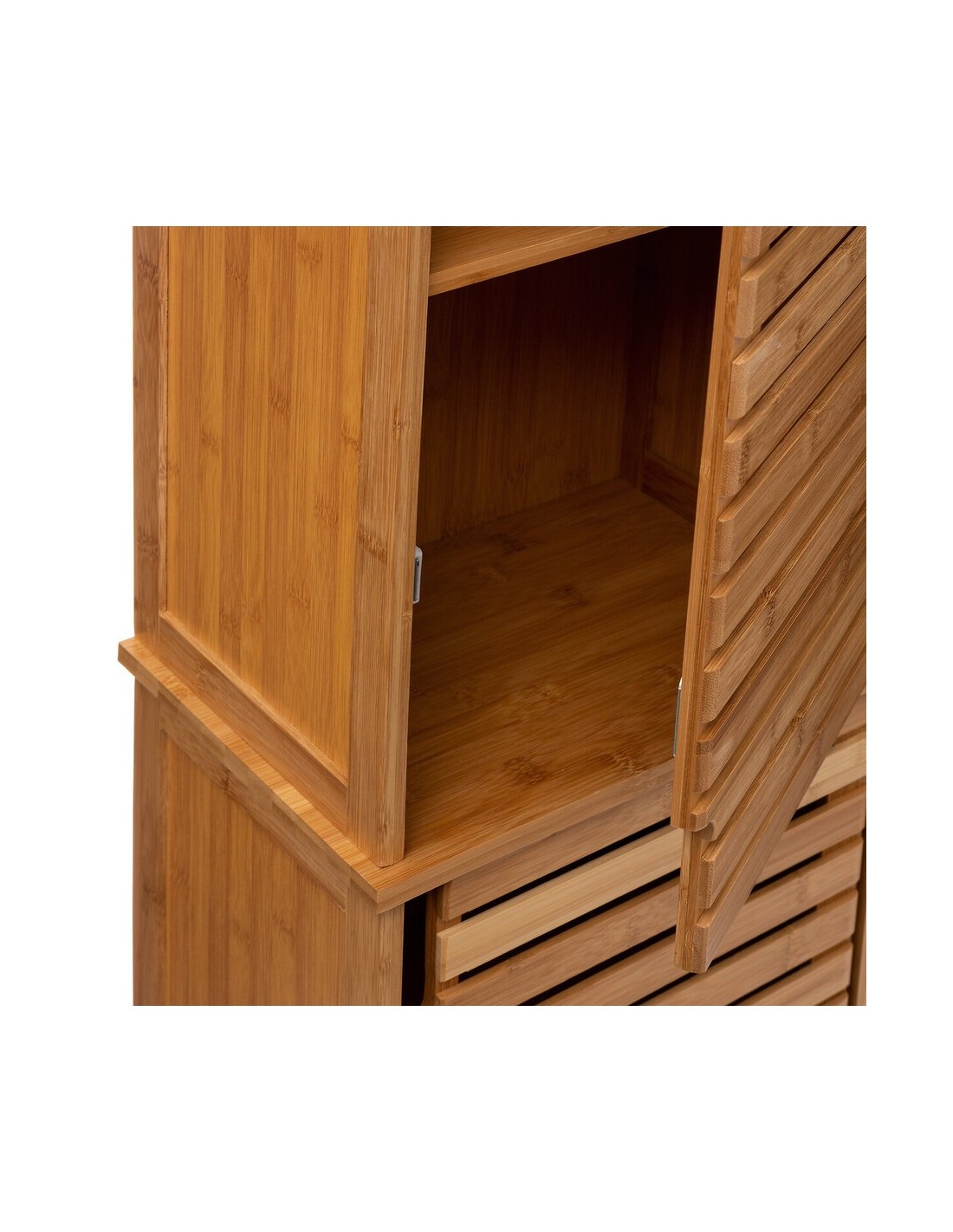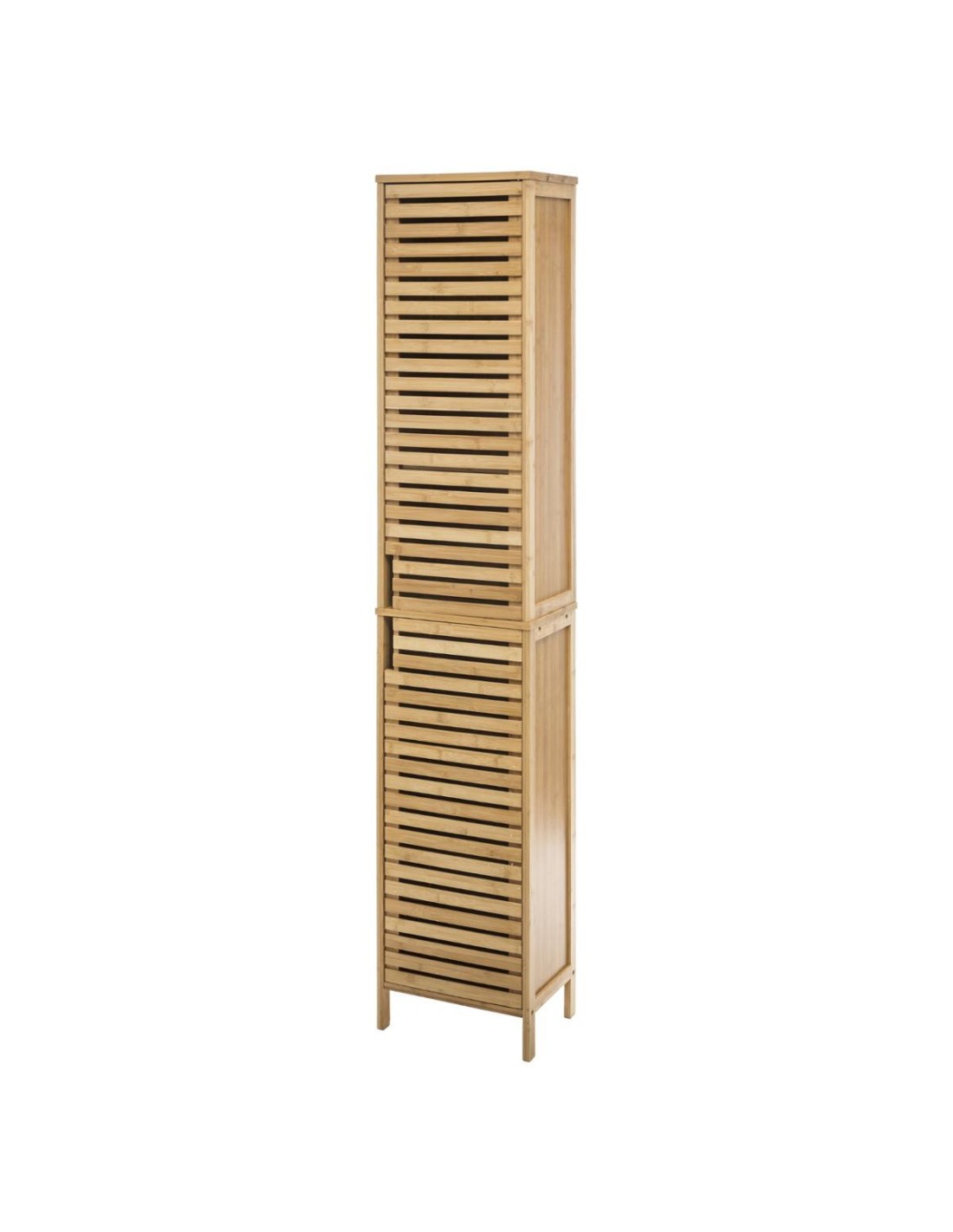 Décor naturel pour cette jolie colonne de salle de bain à 6 niveaux en bambou. Elle possède deux portes persiennes avec encoches. Elle vous offrira un espace de rangement à la fois efficace et discret.