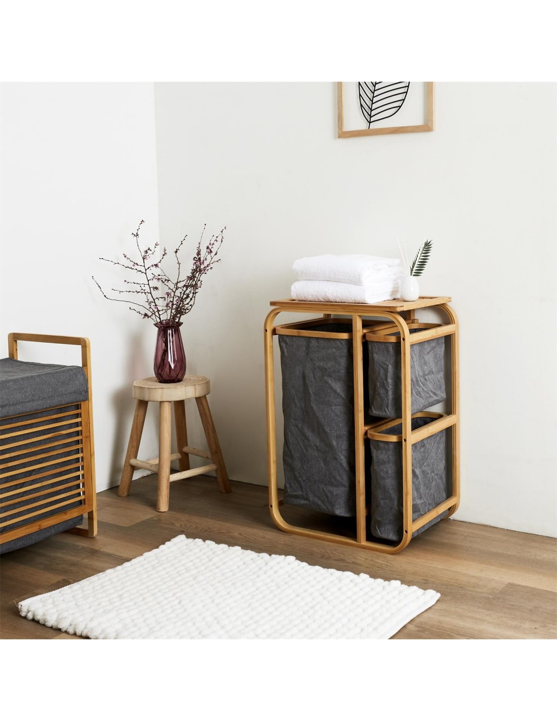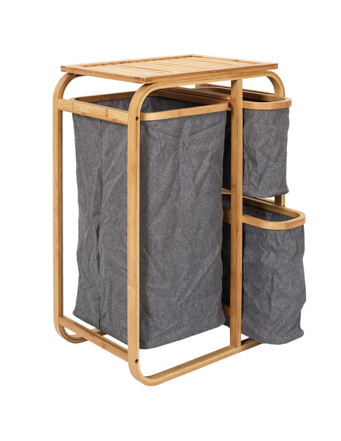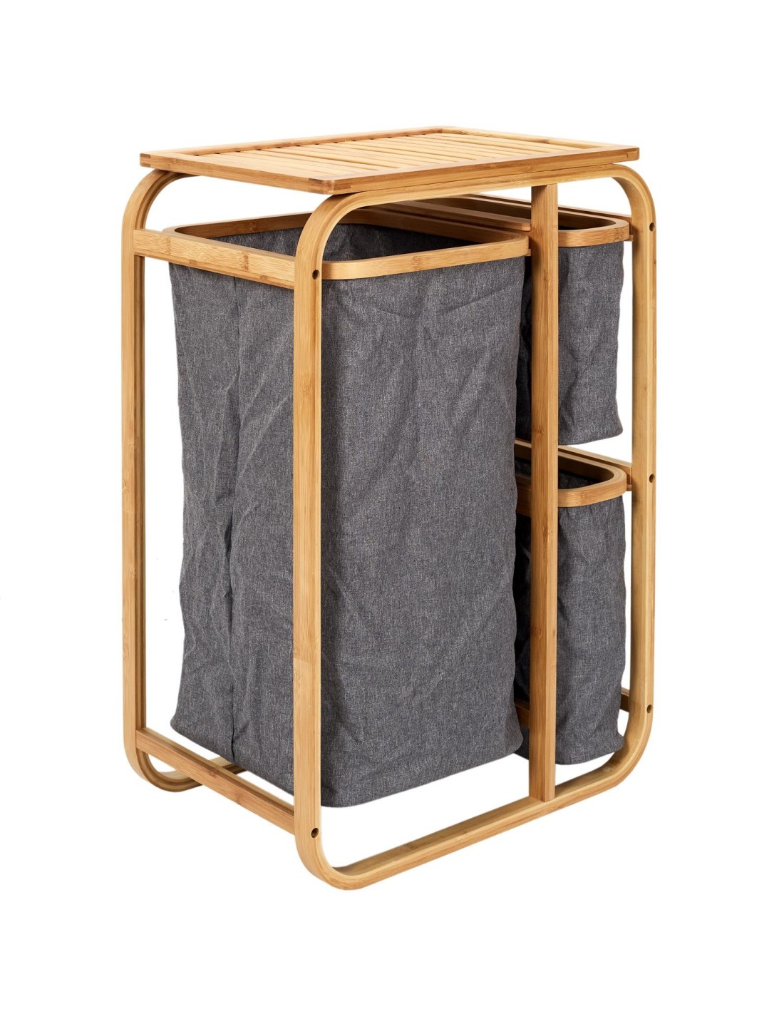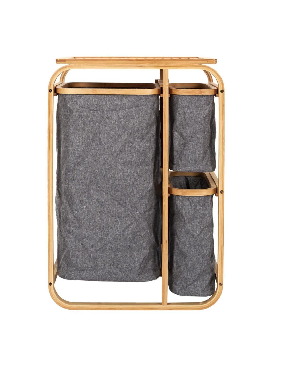 Organisez votre linge avec ce panier à linge. Les trois compartiments permettent de ranger les draps et les serviettes, tandis que le support en bambou apporte une touche élégante. Fabriqué en tissu gris, il optimisera parfaitement l'espace de rangement de votre placard et apportera une véritable touche décorative à n'importe quelle pièce. Ce panier à linge vous permettra de trier votre linge plus facilement que jamais ! Le tissu gris est très élégant dans n'importe quelle pièce et s'harmonisera parfaitement avec votre décoration intérieure. Ce panier à linge vous aidera à trier vos vêtements plus facilement. Ce panier vous permettra de trier votre linge plus facilement et apportera une véritable touche décorative à n'importe quelle pièce de votre maison.