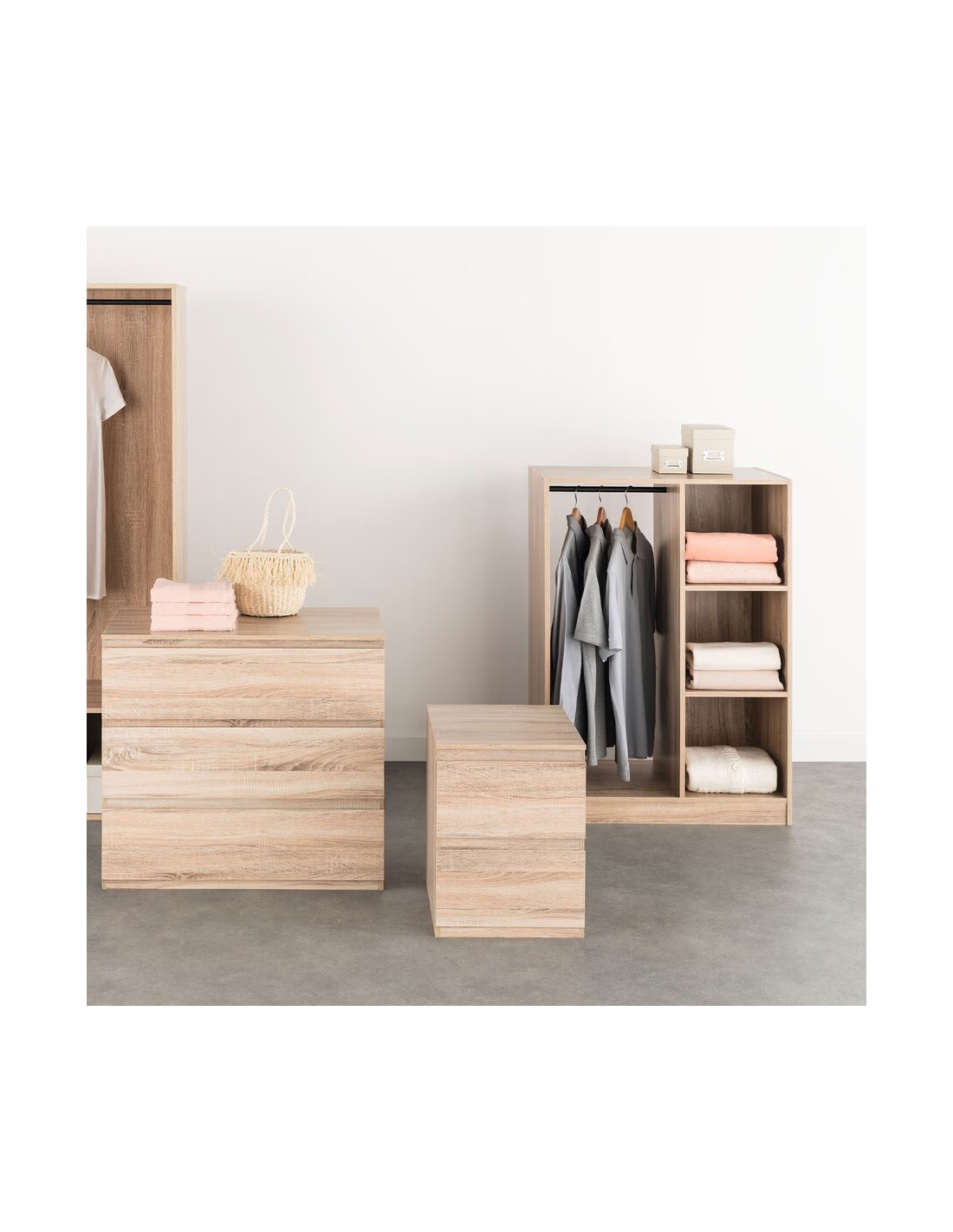 Introduisez dans votre intérieur la Penderie Mix'N'Modul H109 Naturel de la marque Five, une solution de rangement révolutionnaire qui combine fonctionnalité supérieure et esthétique intemporelle. Parfaite pour ceux qui cherchent à optimiser leur espace tout en conservant un style épuré et naturel, cette penderie est l'incarnation de l'élégance pratique. La Penderie Mix'N'Modul se distingue par sa capacité à s'adapter à vos besoins et à votre espace. Grâce à son système modulaire, vous pouvez facilement ajuster, ajouter ou enlever des sections selon l'évolution de vos besoins en rangement. Cette flexibilité fait de la penderie un choix idéal pour les espaces de vie en constante évolution. Fabriquée avec des matériaux de haute qualité, cette penderie arbore une finition en bois naturel qui apporte une touche de chaleur et de sérénité à votre environnement. Le design épuré et minimaliste s'intègre parfaitement dans tout décor, ajoutant une touche de simplicité élégante sans surcharger visuellement l'espace. Offrez-vous le luxe d’un espace organisé avec une penderie qui comprend une barre de suspension robuste, permettant de garder vos vêtements sans plis et facilement accessibles. L'espace ouvert en dessous est parfait pour ranger des boîtes ou des chaussures, maximisant ainsi l'utilisation de chaque centimètre carré.