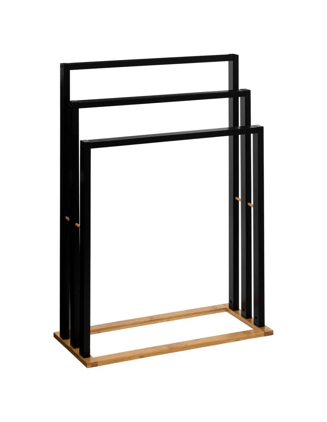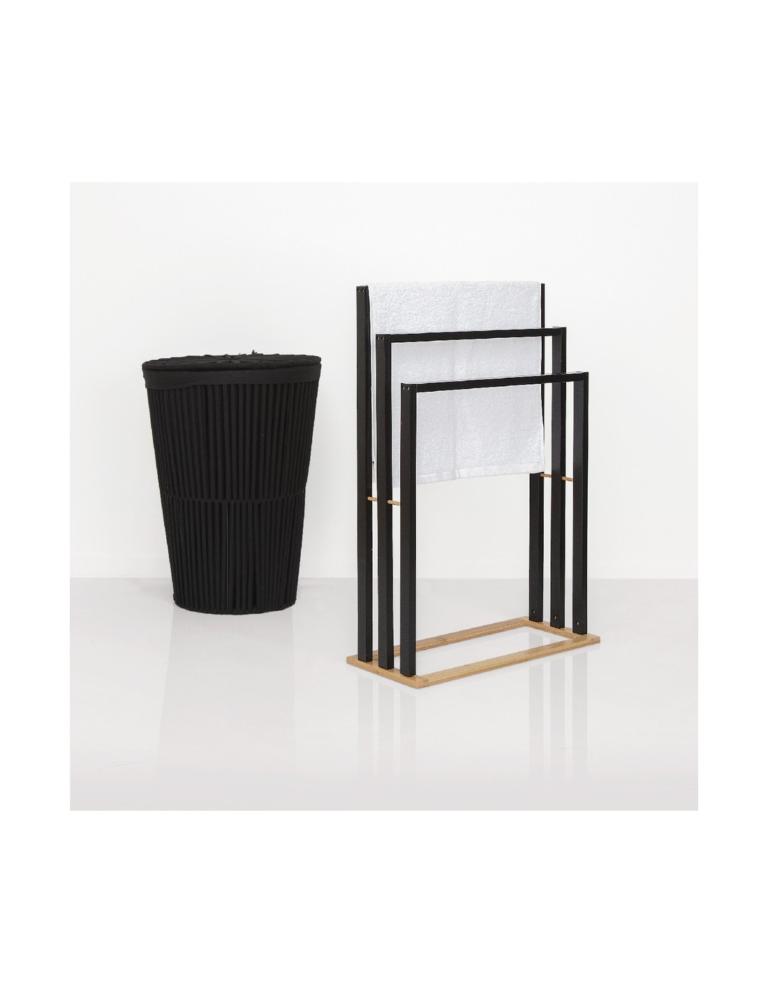 Un porte-serviettes pratique et moderne, fabriqué en bambou écologique. Un porte-serviettes élégant et respectueux de l'environnement. Ce porte-serviettes en bambou a un design parfait pour vos salles de bains, en couleur noire avec une finition huilée pour s'adapter parfaitement à n'importe quel décor. il vous offre une manière innovante, facile et intemporelle d'organiser vos serviettes. Le matériau naturel du bambou, associé à une finition noire, est élégant et fonctionnel tout en ajoutant une touche sophistiquée et moderne à votre salle de bains.