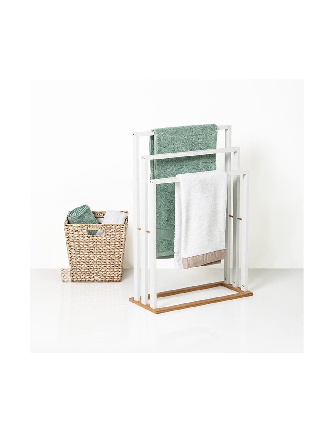 Votre porte-serviette aussi se doit d'avoir du style, alors ne cherchez plus et optez pour notre superbe Porte-Serviette en Bambou ! Avec sa base en bambou et ses portants blancs ce porte serviette apportera une touche de déco zen et naturelle dans votre salle de bain. Sans oublier que grâce à ses 3 portants vous aurez l'espace suffisant pour sécher vos serviettes de bain en toute tranquillité.