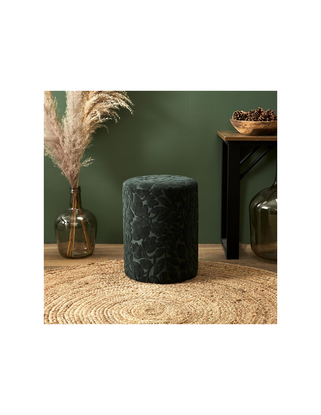 Caractéristiques sur le Pouf En Velours Leaf Vert Home Deco Factory :