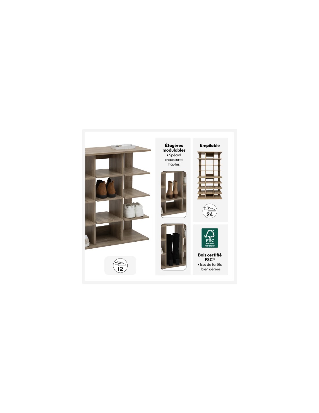Caractéristiques sur le Range-chaussures Moduly 3 niveaux En Bambou Beige Five :