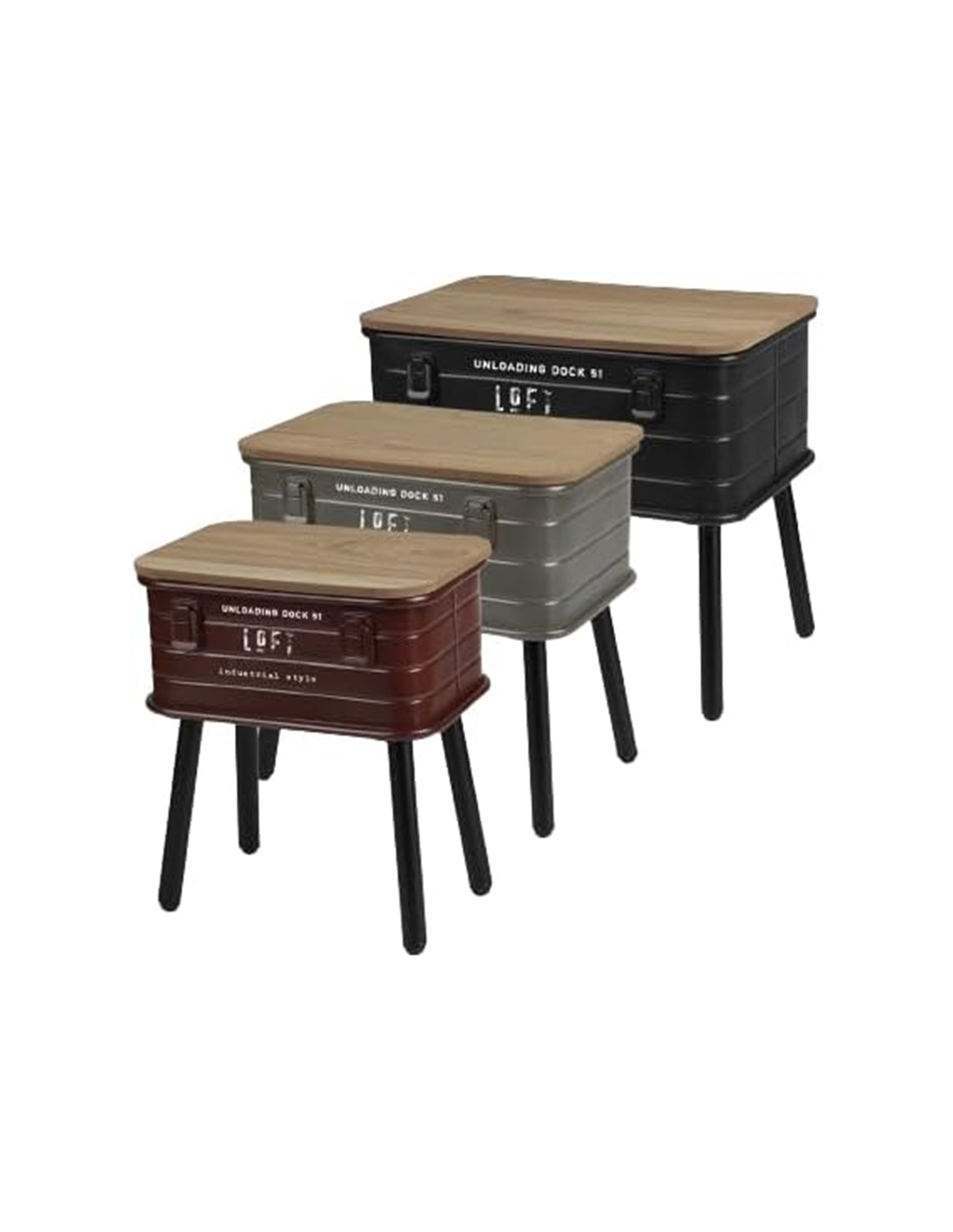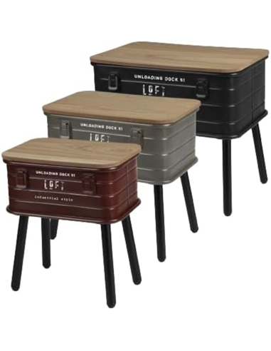 Caractéristiques sur le Set De 3 Tables Caisse Loft & Métal Multicolore Atmosphera :