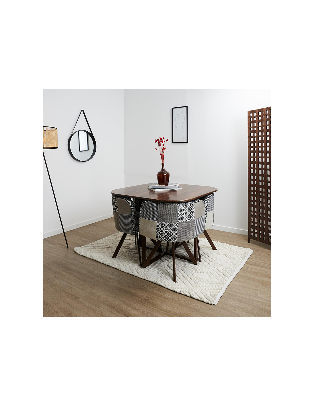 Caractéristiques sur le Set Table Avec 4 Chaises Patchwork Gris Home Deco Factory :