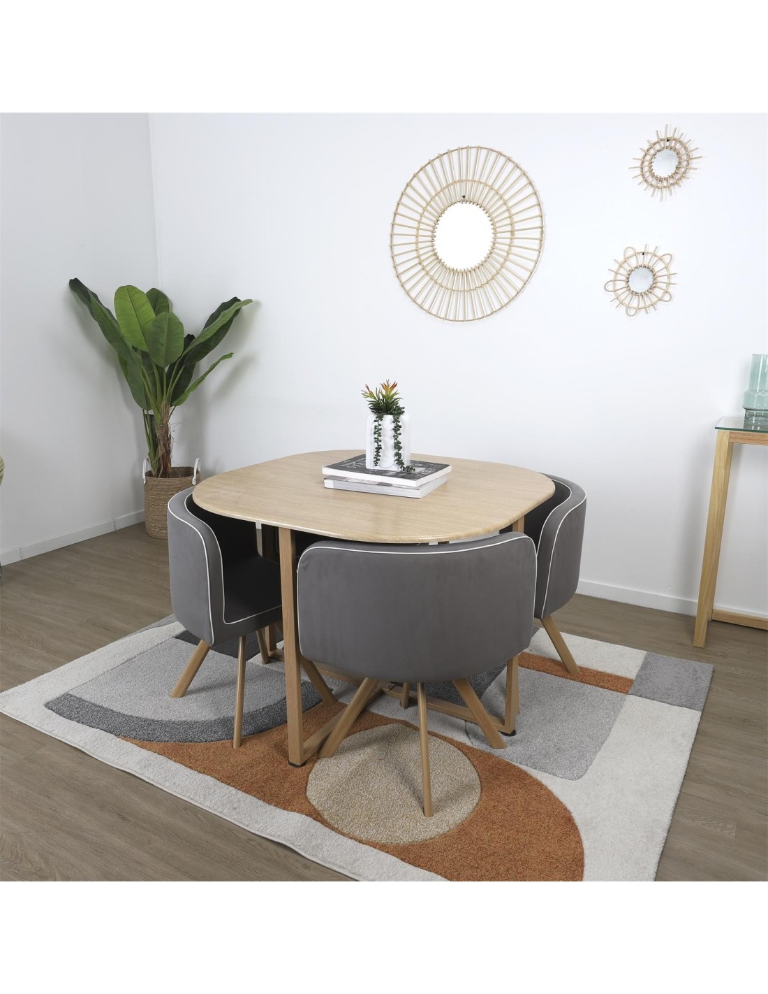 Caractéristiques sur la Table avec 4 chaises en bois Gris Home Deco Factory :