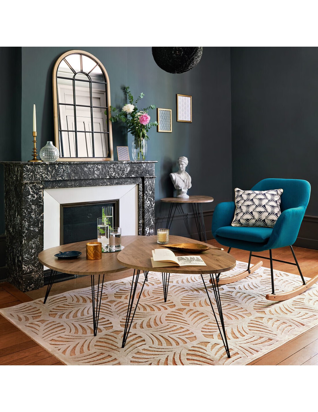 Avec ses lignes épurées et sa finition en bois rustique, la table basse Neile capte l'essence du design industriel. Ce meuble n'est pas seulement une pièce d'ameublement, c'est une déclaration audacieuse qui complète tous les styles de décor, du loft urbain à la maison contemporaine. Les veines naturelles du bois et les tons chauds et riches apportent une ambiance chaleureuse et terreuse à votre salon, le rendant accueillant et esthétiquement attrayant. Construite avec du bois de haute qualité, la table Neile est conçue pour la durabilité autant que pour le style. Sa construction solide résiste à l'usage quotidien, assurant qu'elle reste un point central dans votre salon pendant de nombreuses années. Que ce soit pour supporter votre tasse de café préférée ou pour exposer une collection de vos meilleurs livres, cette table gère tout avec aisance. La taille moyenne de cette table la rend incroyablement polyvalente dans n'importe quel espace. Elle est assez grande pour se rassembler lors de soirées jeux ou de dîners intimes, mais aussi assez compacte pour s'adapter parfaitement dans des espaces de vie plus petits. Sa surface généreuse offre amplement d'espace pour des boissons, des snacks et des décorations, tout en permettant un mouvement facile autour de la pièce.