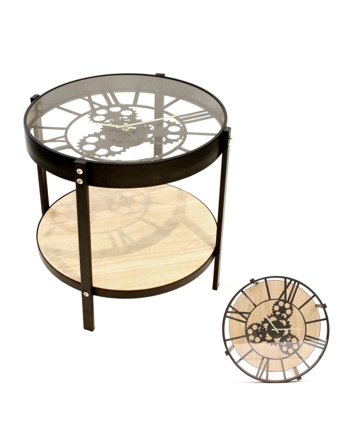 Très décoratif, ce meuble est très pratique. Disposant dune horloge, il attire par son design atypique. Sa couleur noir et naturel est très authentique. Avec un style contemporain il vous offrira le meilleur aménagement qui soit. Vous serez séduit par sa robustesse et sa solidité. Cette table basse, de par son style un peu fantaisiste est un véritable chefs-duvre qu'il ne vous faut surtout pas manquer. Vous aurez le choix de l'intégrer à votre salon, votre séjour ou votre chambre à coucher. Pourquoi ne pas l'utiliser comme chevet ou table d'appoint ? Notez que le fonctionnement de l'horloge est basé sur un mécanisme à pile.