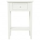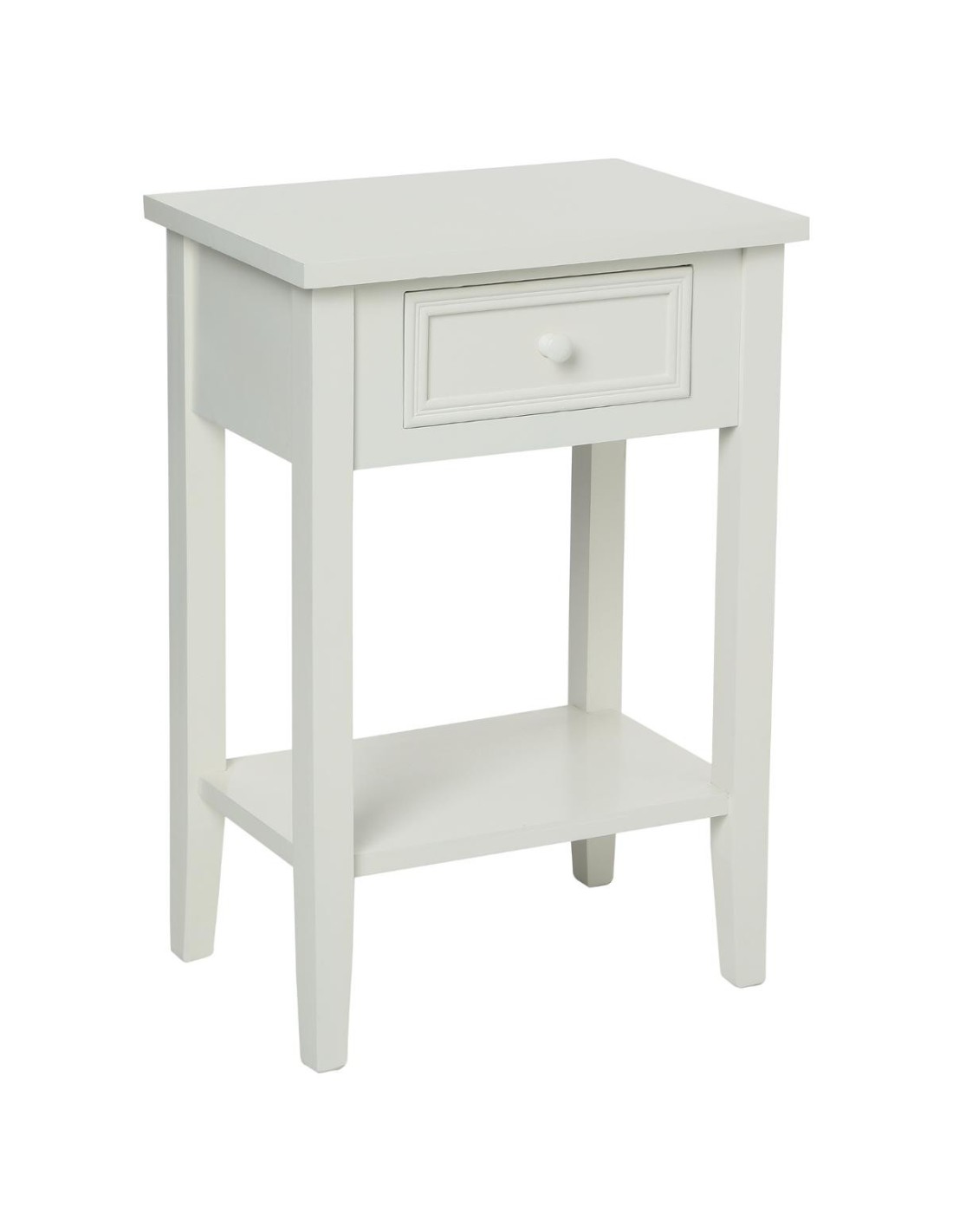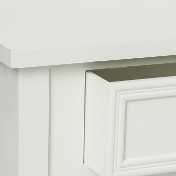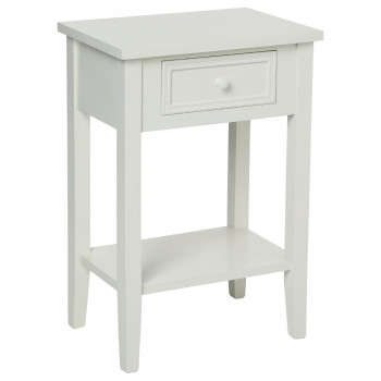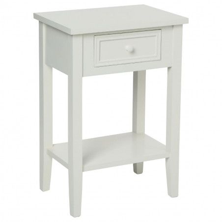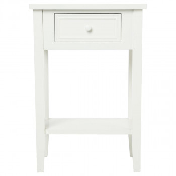 Cette table de chevet, en bois patiné blanc, se compose d'un tiroir ainsi que d'une tablette pour un rangement ordonné et à porte de main. Les pieds sont à monter (notice jointe) simple et rapide. Idéal comme meuble de chevet, d'appoint dans une entrée, un bureau ou dans un salon. Son aspect ancien, inspiré du style français, apporte une ambiance cosy et charme d'antan à votre intérieur.