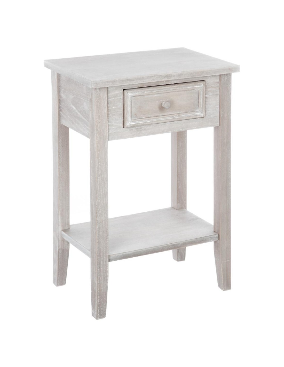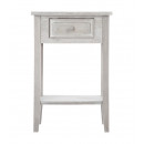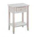 Cette table de chevet, en bois patiné blanc, se compose d'un tiroir ainsi que d'une tablette pour un rangement ordonné et à porte de main. Les pieds sont à monter (notice jointe) simple et rapide. Idéal comme meuble de chevet, d'appoint dans une entrée, un bureau ou dans un salon. Son aspect ancien, inspiré du style français, apporte une ambiance cosy et charme d'antan à votre intérieur.