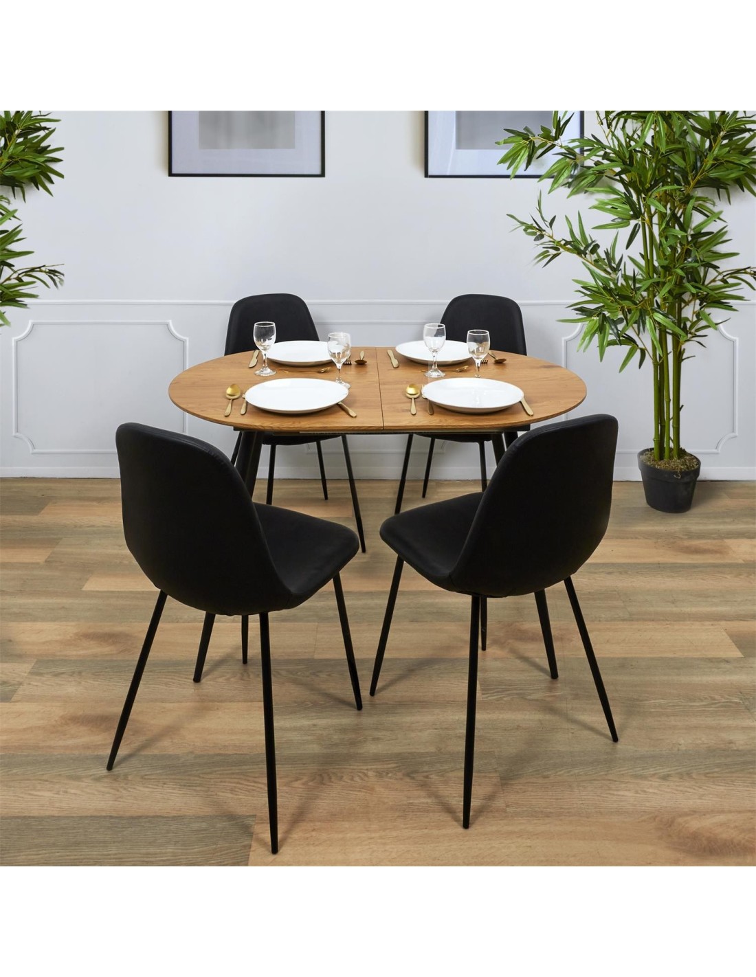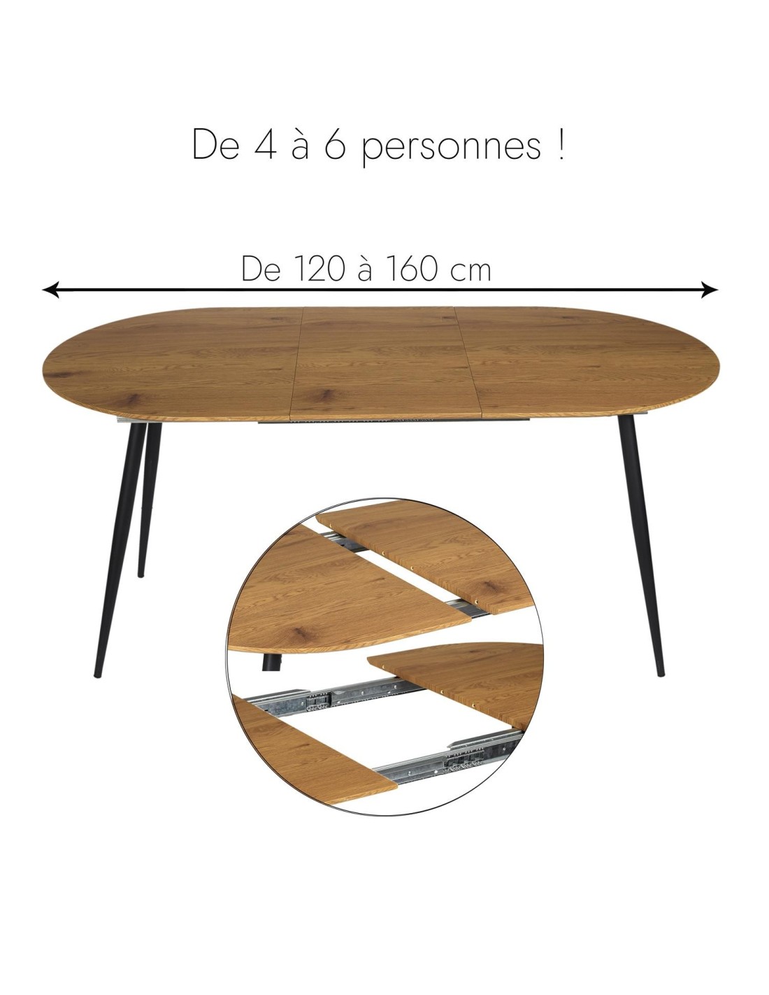 La Table De Diner Extensible est une belle table qui s'adapte à vos besoins. Extensible de 4 à 6 personnes, elle se règle en fonction du nombre de convives. Ses pieds en bois apportent élégance et modernité à la salle à manger. Ronde et pratique, cette table vous séduira par son design et son esthétique ! Cette table extensible est fabriquée en bois et possède de beaux pieds pour un look moderne. Placez cette table n'importe où dans votre salon car elle peut être allongée de 4 à 6 places. Ses rallonges en bois massif permettent d'accueillir tous vos convives et leurs assiettes !