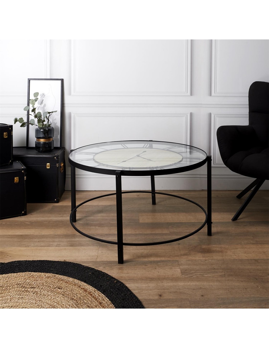 Caractéristiques sur la Table Horloge Dia D90 Noire Home Deco Factory :