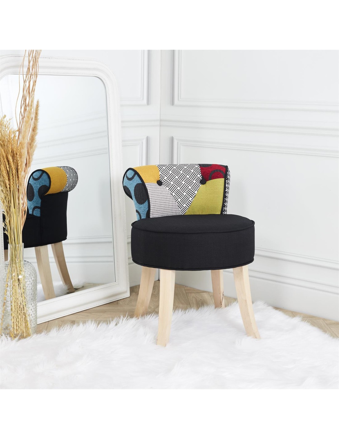 Ce tabouret est parfait pour votre salon. Le design patchwork s'adaptera à votre style de mobilier moderne.