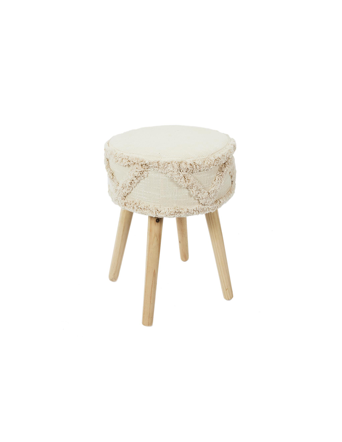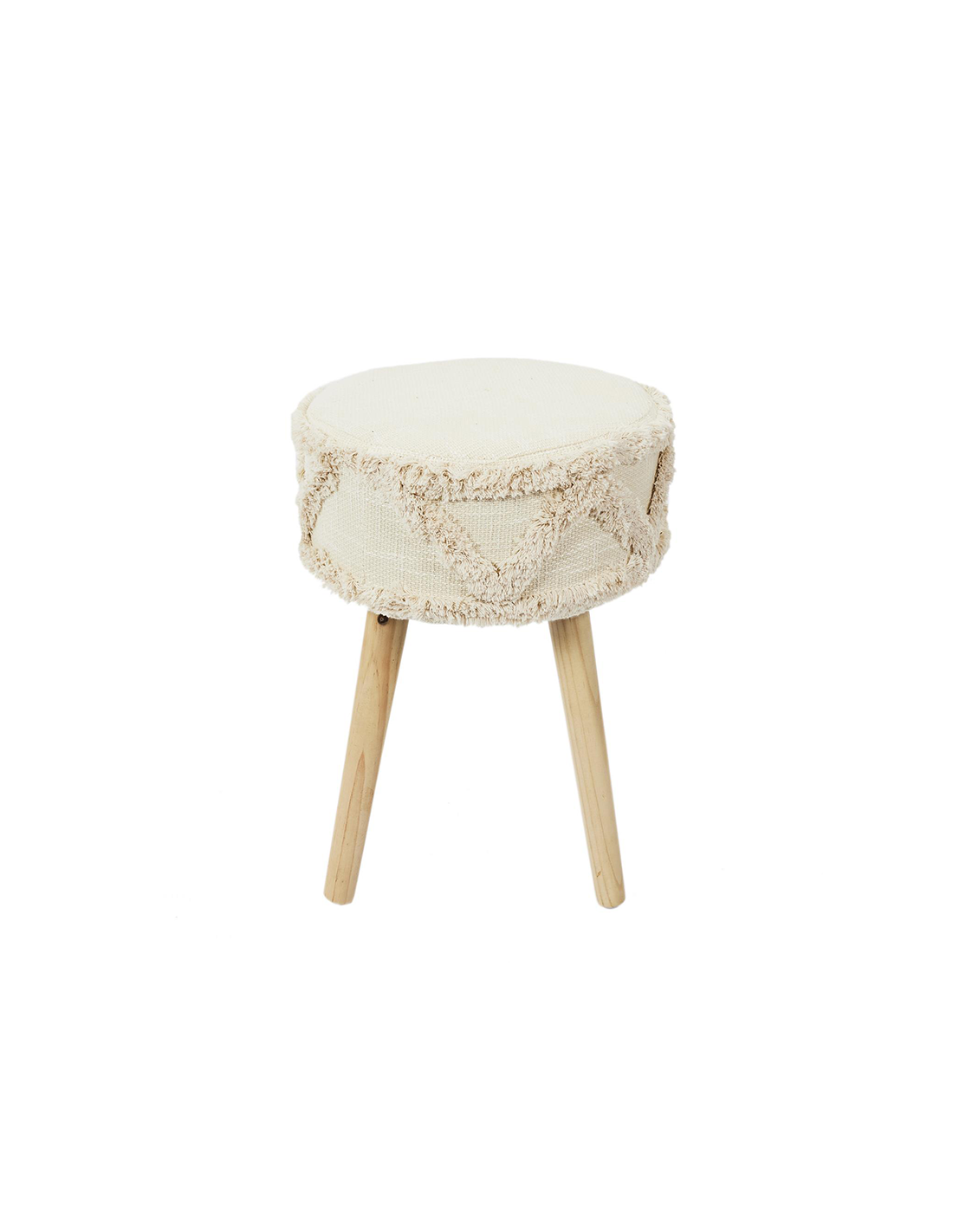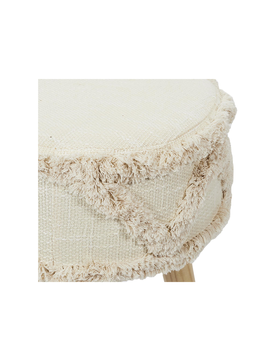 Ce tabouret rond beige est crée pour votre salon. Vous pouvez l'utiliser comme un repose-pies aussi.