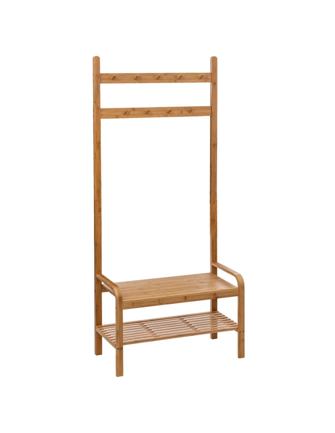 Le vestiaire d'entrée est un beau meuble pour décorer votre espace de vie. Ce meuble de rangement prend sa plus belle couleur bois pour vous séduire ! Il apportera une touche de caractère dans votre intérieur. Le porte-manteau est équipé d'une barre pour suspendre vos vêtements et de deux étagères pour ranger vos chaussures ou toute autre décoration. Sa construction robuste vous offrira de bonnes capacités de rangement. Ce meuble de rangement ajoutera du caractère à votre espace de vie et vous permettra de ranger vos vêtements.